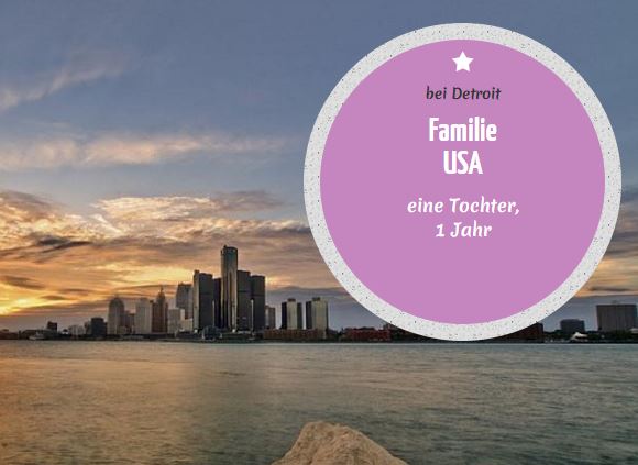 Im Bundesstaat Michigan, unweit von Detroit, sucht eine kleine internationale dreiköpfige grannyerfahrene Arzt-Familie (Benutzername  Hajar) mit momentan 18 Monate alter Tochter, ab Ende März, ihre nächste kleinkinderfahrene, liebevolle deutschsprachige  Granny Aupair. Die Familie lebt in Bloomfield Township in der Nähe von vielen Seen.