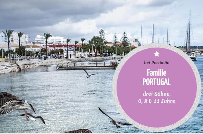 In dem kleinen Ort Mexilhoeira da Carregação zwischen Silves und Lagos sucht eine sehr sportiche deutschsprachige fünfköpfige Familie (Benutzername nboeh) mit drei Söhnen (11, 8, und 6 Monate) plus Hund so bald wie möglich eine flexible, erfahrene, offene Ersatzoma, mit Führerschein und sicherer Fahrweise (auch im Dunkeln), die auch gerne kocht. Da der Papa viel im Ausland unterwegs ist, freut sich die Mutter über etwas Unterstützung gerade auch bei Fahrdiensten für die älteren Söhne.